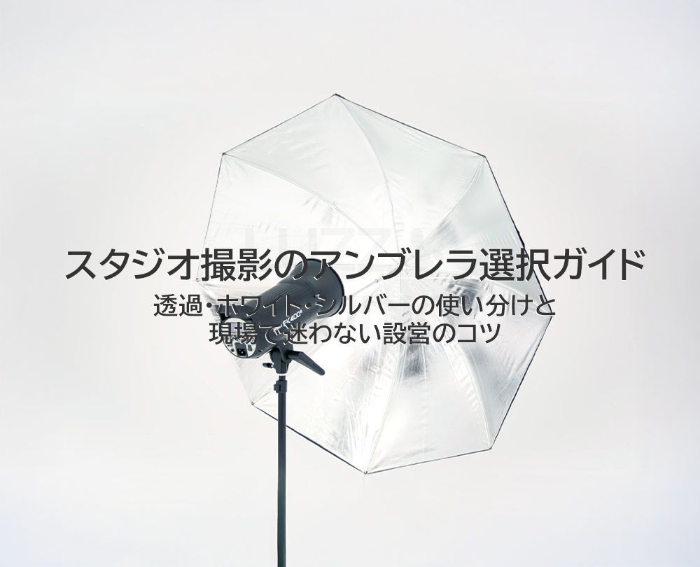 スタジオ撮影のアンブレラ選択ガイド|透過・ホワイト・シルバーの使い分けと現場で迷わない設営のコツ